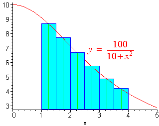 a flat floor and a right wall at x = 1 yards and a left wall at x = 4 yards. We could try to use the fundamental theorem of calculus, but we would hit a major stumbling block when trying to find an antiderivative. Since we are just painting a wall, not performing open heart surgery, we only need an approximation.
