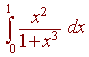Solution This is a substitution with u = 1 + x3 du = 3x2 dx 1/3 du = x2 dx This is just old substitution business. The new part is how to deal with the limits 0 and 1. We just plug into x and find u. When x = 0 u = 1 + 03 = 1 When x = 1 u = 1 + 13 = 2 Now we can substitute all the numbers and expressions to get