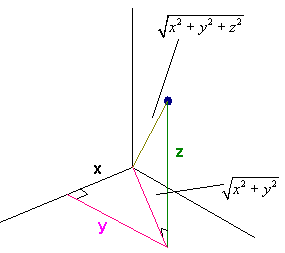 Exercise The Distance Formula The picture below shows how the Pythagorean Theorem relates to distance in three dimensions. Notice that there are two right triangles.
