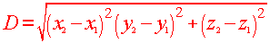 Example Find the distance between the points (2,3,10) and (6,2,2) Solution We find (6 - 2)2 + (3 - 2)2 + (2-10)2 = 42 + 12 + (-8)8 = 16 + 1 + 64 = 81 Now take a square root and the distance is 9.