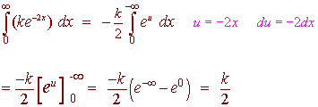 Example Find k such that f(x) = ke-2x is a probability density function defined on [0,