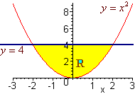 Example Find the double integral of f(x,y) = 6x2 + 2y over R where R is the region between y = x2 and y = 4.