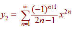 = 1 from our last equation we have 0 = -2a2 – a0 = -2a2 or a2 = 0 We also have 0 = - 6a3 or a3 = 0 The terms from the series must all be zero, since that is what it means for a polynomial to be zero. Hence Notice that since a2 = a3 = 0 All of the rest of the coefficients must be zero, since they are each a multiple of the coefficient two before them. Therefore the first linear independent solution is y1 = x For the second linearly independent solution, we let y(0)