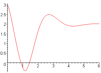 A 1 kg bar is attached to a large spring with spring constant 5 and damping constant 2. It is pulled down 3m from it's equilibrium position and then released. After one second a constant force of 10 Newtons is exerted on the bar. The force remains turned on indefinitely. Determine the equation of motion of the bar.