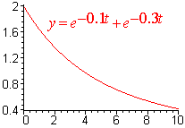 In all three cases u tends to 0 as t tends to infinity. When the damping is small compared to km, we are in the first case. After a change of variables and some trig we end up with u = Re-gt/2m cos(mt - d) Notice that u is between -Re-gt/2m < u < Re-gt/2m We can say that u is decreasing exponentially in absolute value. Below is the graph of damped oscillation.