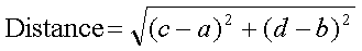 Recall that for two points (a,b) and (c,d) in a plane that the distance is found by the formula