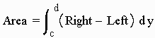 Students will attempt the following: 1) Find the area between the curves y = x2 and y = sqrt(x). 2) Find the area between the curves y = x2 - 4 and y = -2x 3) Find the area between the curves y = 2/x and y = -x + 3 4) Find the area between the curves y = 3x and y = 2x + 1 IV. Area Bounded by Two Functions of y Example: Find the area between the curves x = 1 - y2 and x = y2 - 1 Here the curves bound the region from the left and the right. We use the formula