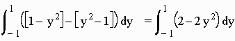 = [3/4x4 - 3/2x2]| from -1 to 0 +[ 3/2x2 - 3/4x4]| from 0 to 1 = 3/4 + 3/4 = 1.5. V. Application Let y = f(x) be the demand function for a product and y = g(x) be the supply function. Then We define the equilibrium point to be the intersection of the two curves. The consumer surplus is defined by the area above the equilibrium value and below the demand curve, while the producer surplus is defined by the area below the equilibrium value and above the supply curve. Example: Find the producer surplus for the demand curve f(x) = 1,000 - .4x2 and the supply curve of g(x) = 42x Solution: We first find the equilibrium point: We set 1,000 - .4x2 = 42x or .4x2 + 42x - 1,000 = 0 We get x = 20 hence y = 42(20) = 840 We integrate