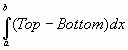 = [2y - 2/3y3]|from -1 to 1 = 8/3. Example: Find the area between the curves y = 0 and y = 3(x3 - x) Solution: when we graph the region, we see that the curves cross each other so that the top and bottom switch. Hence we split the integral into two integrals: