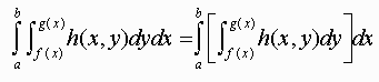 Exercise: Evaluate int from 0 to 3 of int from 1 to y of y2 dxdy IV. Area Let R be a region bounded by f(x) < y < g(x), a < x < b then the area of R is given by