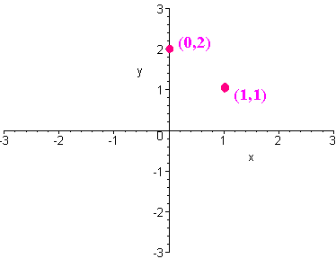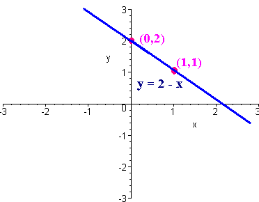 This indicates the points (0,2) and (1,1) Step 2 Plot the two points on the xy-plane. Graph paper would be useful here. Step 3 Connect the dots with a line using a ruler e-mail Questions and Suggestions