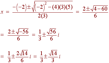 Example Solve 3x2 - 2x + 5