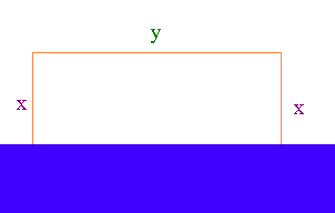 Maximum and Minimum Problems Example: Suppose that you own a large piece of property along a straight part of the lakefront. You have enough money to buy 200 feet of fencing to enclose a rectangular beach. What should the dimensions of your beach be so that you have the maximum area of beach? Solution You only need to build the fence on three sides of the rectangle. Let x be the length of fence perpendicular to the lake and let y be the length of the fence parallel to the lake. Then 2x + y = 200 or y = 200 - 2x. The area of the beach is A = xy = (x)(200 - 2x) = -2x2 +200x which is a concave down parabola. The vertex represents the highest point.
