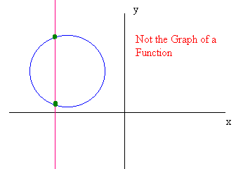 The Vertical Line Test If every vertical line passes through the graph at most once then the graph is the graph of a function. Example The Circle is not the graph of a function since there are vertical lines that cross it twice.