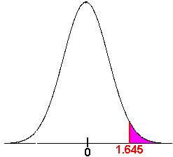 Since we are using a 95% level of significance with a one tailed test, we have zc = 1.645. The rejection region is shown in the picture. We see that 0.26 does not lie in the rejection region, hence we fail to reject the null hypothesis. We say that there is insufficient evidence to make a conclusion about the percentage of infested pines being greater than 10%.