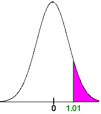 P(z > 1.01)  =  1 - P(z < 1.01)  =  1 - .8438  =  .1562