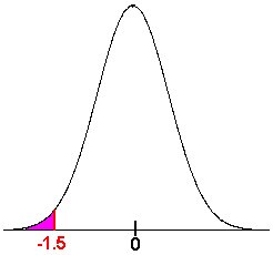 65,000 - 80,000 We want the probability P(z < -1.5). We go to the table to get a probability of 0.0668. Compare our graph with the table graph and notice that this is the probability that we want. We can say that about 6.7% of the tires will wear out before the guarantee expires.