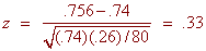 Problem 7 Do you favor allowing pilots to carry a gun in the cockpit? 74% of Americans are in favor of allowing pilots to carry a gun in the cockpit. A. 80 passengers board a plane heading toward New York. What is the probability that the greater than 75% of them favor allowing the pilot to carry a gun? We want P(p > 0.75) however, we must first use the continuity correction. We need P(p > 0.75 + 0.5/80) = P(p > .756) We find the z-score