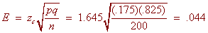 C. Write a sentence that explains your findings. We are 95% confident that the mean weight for all Sierra Nevada black bears is between 306.1 and 333.9. Problem 10 A psychologist is doing research on blindly following orders. 200 volunteers were ordered to push a button that would inflict 50 volts of electricity into a laboratory animal. 35 of them refused to push the button. Construct a 90% confidence interval for the true proportion of people who will refuse to zap the animal. Write a sentence that explains your findings. We are asked to find a confidence interval for a proportion. We have p = 35/200 = 0.175 q = 1 - .175 = .825 n = 200 zc = 1.645 We plug these numbers into the formula for the margin of error