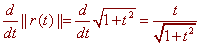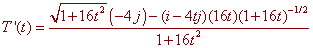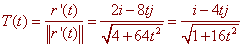 Now get rid of the denominator and multiply by the root to get (-4j)(1 + 16t2) - (i - 4tj)(16t) = 4[-j(1 + 16t2) - (i - 4tj)(4t)] Now divide by 4 and plug in -1 for t to get -17 j - (i + 4j)(-4) = 4i - j Dividing by the magnitude gives