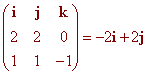 Now we use the formula for a line given a point and a parallel vector r(t) = i + j + t(-2i + 2j) The parametric equations are x(t) = 1 - 2t y(t) = 1 + 2t z(t) = 0
