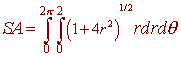 B. The surface area of the part of the paraboloid z = x2 + y2 that lies inside the cylinder x2 + y2 = 4 We calculate the partials zx = 2x zy = 2y (1 + zz + zy)1/2 = (1 + 4x2 + 4y2)1/2 Since the region is a circle of radius 2, we convert to polar coordinates to get