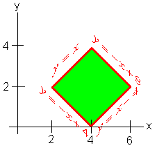 We sketch the picture and find the equation of the four lines that border the square. We can also write 0 < x - y < 4 and 4 < x + y < 8 We let u = x - y v = x + y Adding the two equations gives u + v = 2x x = 1/2 (u + v) Subtracting the two equations gives v - u = 2y y = 1/2 (v - u) We can compute the Jacobian