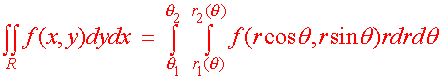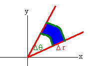 Double Integration in Polar Coordinates Polar Double Integration Formula Many of the double integrals that we have encountered so far have involved circles or at least expressions with x2 + y2. When we see these expressions a bell should ring and we should shout, "Can't we use polar coordinates." The answer is, "Yes" but only with care. Recall that when we changed variables in single variable integration such as u = 2x, we needed to work out the stretching factor du = 2dx. The idea is similar with two variable integration. When we change to polar coordinates, there will also be a stretching factor. This is evident since the area of the "polar rectangle" is not just as one may expect . The picture is shown below. Even if Dr and Dq are very small the area is not the product (Dr)(Dq). This comes from the definition of radians. An arc that extends Dq radians a distance r out from the origin has length rDq. If both Dr and Dq are very small then the polar rectangle has area Area = r Dr Dq This leads us to the following theorem