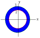 Solution The picture is shown below The region this time is the annulus (washer) between the circles r = 2 and r = 3 as shown below. The sphere has equation x2 + y2 + z2 = 9 In polar coordinates this reduces to r2 + z2 = 9 Solving for z by subtracting r2 and taking a square root we get top and bottom surfaces of