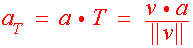 Proof First notice that v = ||v|| T and T' = ||T'|| N Taking the derivative of both sides gives a = v' = ||v||' T + ||v|| T' = ||v||' T + ||v|| ||T' || N This tells us that the acceleration vector is in the plane that contains the unit tangent vector and the unit normal vector. The first equality follows immediately from the definition of the component of a vector in the direction of another vector. The second equalities will be left as exercises.