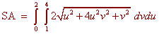 Example Find the surface area of the surface given by r(u,v) = (v2) i + (u - v) j + (u2) k 0 < u < 2 1 < v < 4