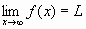 if for every e > 0, there is an M > 0 such that |f(x) - L| < e whenever x > M. In other words as x gets very large f(x) gets very close to L. If