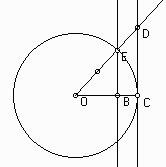 Where the circle is the unit circle. Then the coordinates of E are (cos(t),sin(t)). Notice that the the areas have the following orders: triangle OBE < sector OCE < triangle OCD Area of OBE = 1/2 sin(t)cos(t), Area of OCE = 1/2 t , Area of OCD = 1/2sin(t)/cos(t) (since similar triangles give CD = EB/OB = sin(t)/cos(t)) Hence 1/2 sin(t)cos(t) < 1/2 t < 1/2sin(t)/cos(t) or cos(t) < t/sin(t) < 1/cos(t) As t -> 0 both cos(t) and 1/cos(t) approach 1. By the squeeze theorem, t/sin(t) -> 1 Hence sin(t)/t -> 1 We will leave it to be read that lim t-> 0 (cos(t)- 1)/t = 0 IV. Derivative of f(x) = sin(x) Theorem: If f(x) = sin(x) then f'(x) = cos(x) Proof: We compute lim h-> 0 [sin(x + h) - sin(x)]/h = lim h->0 [sin(x)cos(h) + sin(h)cos(x) - sin(x)]h = lim h -> 0 [(sin(x)cos(h) - sin(x))/h + (sin(h)cos(x)/h)] = sin(x) lim h ->0 [(cos(h) - 1)/h] + cos(x) lim h->0 [sin(h)/h] = cos(x) V. d/dx cos(x) Theorem: If f(x) = cos(x) then f'(x) = sin(x) Proof: f(x) = cos(x) = sin(pi/2 - x) Hence f'(x) = -cos(pi/2 - x) = -sin(x) VI. The other trig functions Example: d/dx tan(x) = d/dx (sin(x)/cos(x)) = [cos(x)cos(x) - sin(x)(-sin(x))/(cos(x))2] = 1/ (cos(x))2 = sec2 (x) Exercise: Show that A. d/dx cot(x) = -csc2 (x) B. d/dx sec(x) = sec(x) tan(x) C. d/dx csc(x) = -csc(x)cot(x) D. d/dx ln(sec(x) + tan(x)) = sec(x) E. d/dx ln(sec(x) ) = tan(x)