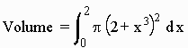 Discs and Washers Part 2 I. Quiz II. Homework III. Revolving about a non-axis line. Find the volume of the region formed by revolving the curve y = x3 0<x<2 about the line y = -2. Solution: This time we revolve the cross-section and obtain a disk. The radius of the disk is 2 plus the y coordinate of the curve. Hence A = p(2 + x3)2 so that