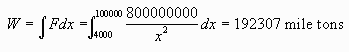 Suppose that a 50 ton rocket is to be sent to mars and after 100,000 miles, the rocket is completely free of the earths gravity.  If the radius of the earth is 4,000 miles, how much work is required to send the rocket out of orbit?
