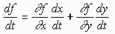 = (2x + 2 - y)(2t) + (-x + 2y)(3t2 - 2t) When t = 2, x(2) = 5 and y(2) = 8 - 4 = 4 hence df/dt = 2(5 + 2 - 4)((2)(2) + (-5 + 2(4))(3(4) - 2(2)) = 48 Exercise: Let f(x,y) = 2x -3xy and x(theta) = 2cos theta and y(theta) = 2sin(theta) Find df/dtheta IV. The Chain Rule for 2 Variables Let f(x,y) be a 2 variable function and x = x(u,v) and y = y(u,v) then