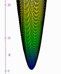is a paraboloid since for constant z we get a circle and for constant x or y we get a parabola. We use the suffix -oid to mean ellipse or circle. We have: x2/a2 + y2/b2 + z2/c2 = 1 is an ellipsiod -x2/a2 - y2/b2 + z2/c2 = 1 is a hyperboloid of 2 sheets while x2/a2 + y2/b2 - z2/c2 = 1 is a hyperboloid of 1 sheet VI. Surface of Revolution To let y = f(x) be a curve, then the equation of the surface of revolution abut the x-axis is y2 + z2 = f(x)2