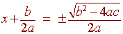Finally subtract b/2a from both sides to get the quadratic formula.