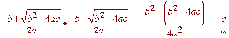 Note that if a is 1 then the sum of the roots is -b and the product is c. This relates to factoring when we find two numbers that add to b and multiply to c.