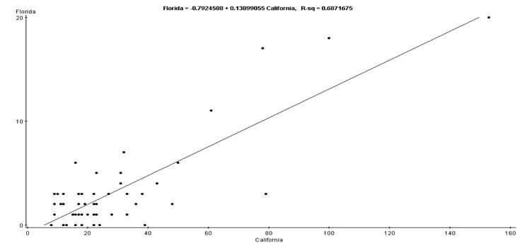 linear regression results. The y-intercept is -.79 because Florida is the y