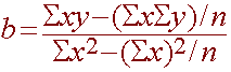 Where a is the y-intercept and b is the slopex is the independent or predictor variable and y is the dependent or response variable.  To find a and b we follow the steps: