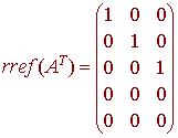 Hence the basis for the column space of AT consists of the first three columns (all three columns) (1,0,-1,0,1), (0,1,2,0,1), (0,0,0,1,-2) and these form a basis for the row space of A. Notice that the column rank and the row rank are the same for the above matrix. This will always be true since the number of vectors in each space corresponds to the number of corners of rref(A). We call the column rank (which is equal to the row rank) the rank. Related Theorems The next thing to notice is that each column that does not contain a corner corresponds to a basis vector of the null space of A. We call the dimension of the null space the nullity of A. Putting this all together gives Theorem Let A be an m x n matrix, then rank(A) + nullity(A) = n