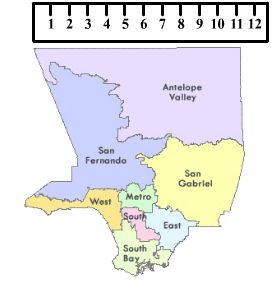 Example 3 The diagram below shows a ruler (the numbers are in inches) and a map of Las Angeles County.
